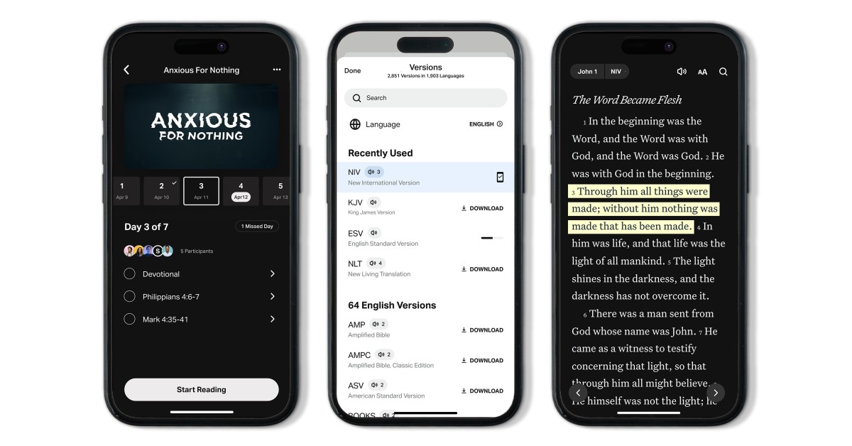 Globally, YouVersion has the most popular Bible app, which includes the Bible App, the Bible App Lite for internet-restricted places, and the Bible App for Kids. It anticipates reaching 1 billion downloads—a number that represents approximately one-eighth of the world’s population—by November 17.