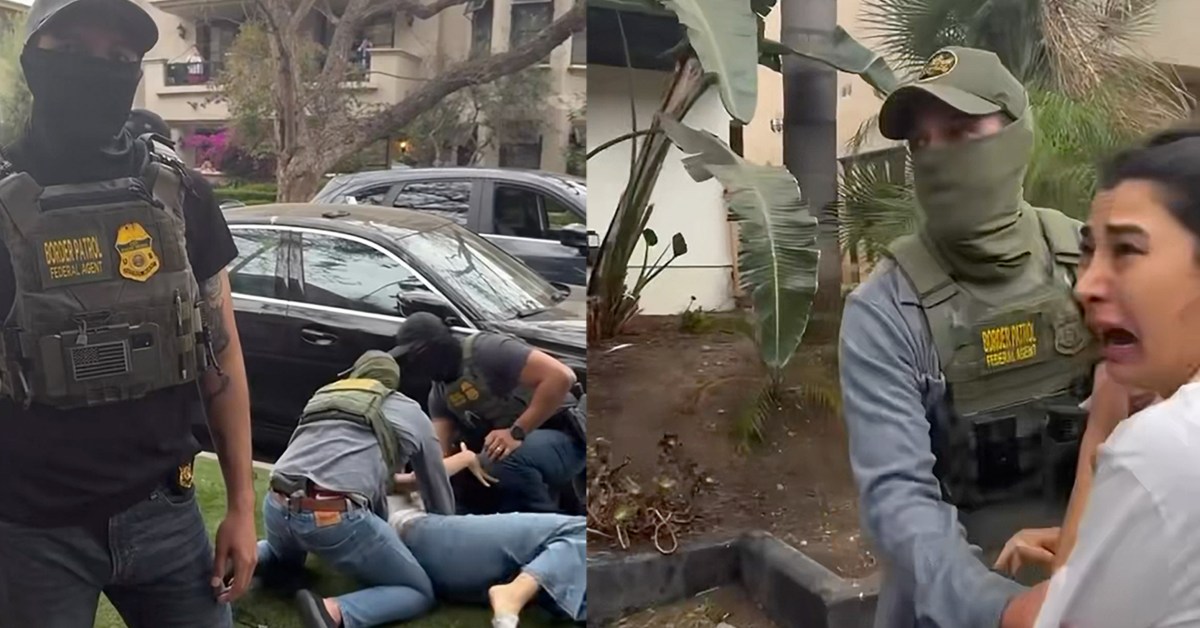 Seconds later, the detained man’s wife collapses to the grass in an apparent panic attack, convulsing and hyperventilating. Torosian moves closer, attempting to comfort her. Agents tell him to keep away or face arrest himself.