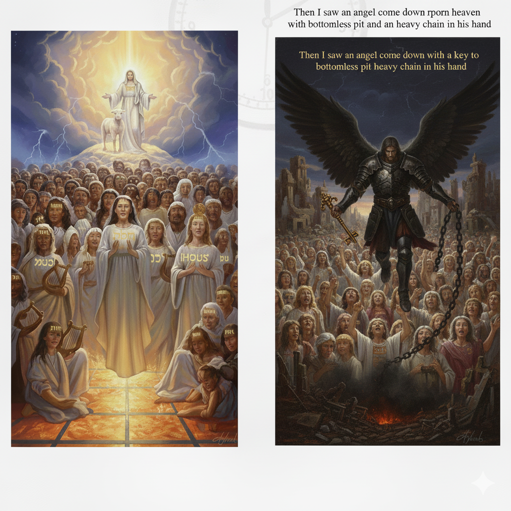 Then I saw an angel come down from heaven with the key to the bottomless pit and a heavy chain in his hand.